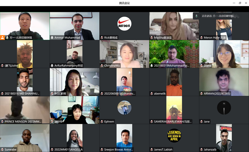 阿玛尔·穆罕默德首先介绍了北京环球英才交流促进会来华留学人才专委会的基本情况,包括协会的使命与职能等。随后,他详细介绍了来华留学生的实习居留、工作居留、创新创业奖励等方面的相关政策与机制,并以几位北印毕业留学生的升学与就业情况为例,讲解了留学生在华发展的关键因素。最后,阿玛尔·穆罕默德预祝学校国际学生们学业进步,顺利毕业,走向心仪的职业发展道路。